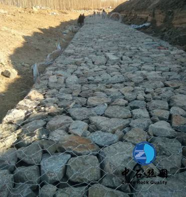 石籠網(wǎng)是使填石固定就位的鐵絲或聚合物絲網(wǎng)格式制作物。鐵絲籠是由鐵絲編織的網(wǎng)格或焊接而成的結(jié)構(gòu)物。這兩種結(jié)構(gòu)可以是電鍍的,編織的鐵絲箱可另外涂上PVC。用抗風(fēng)化堅(jiān)硬石塊作填料,它在石箱或石籠沉排中不會(huì)因磨蝕而很快破碎。裝有不同類(lèi)型的塊石的石籠有不同的特性。多角的塊石能相互很好地聯(lián)鎖在一起,用其填裝的石籠不易變形。